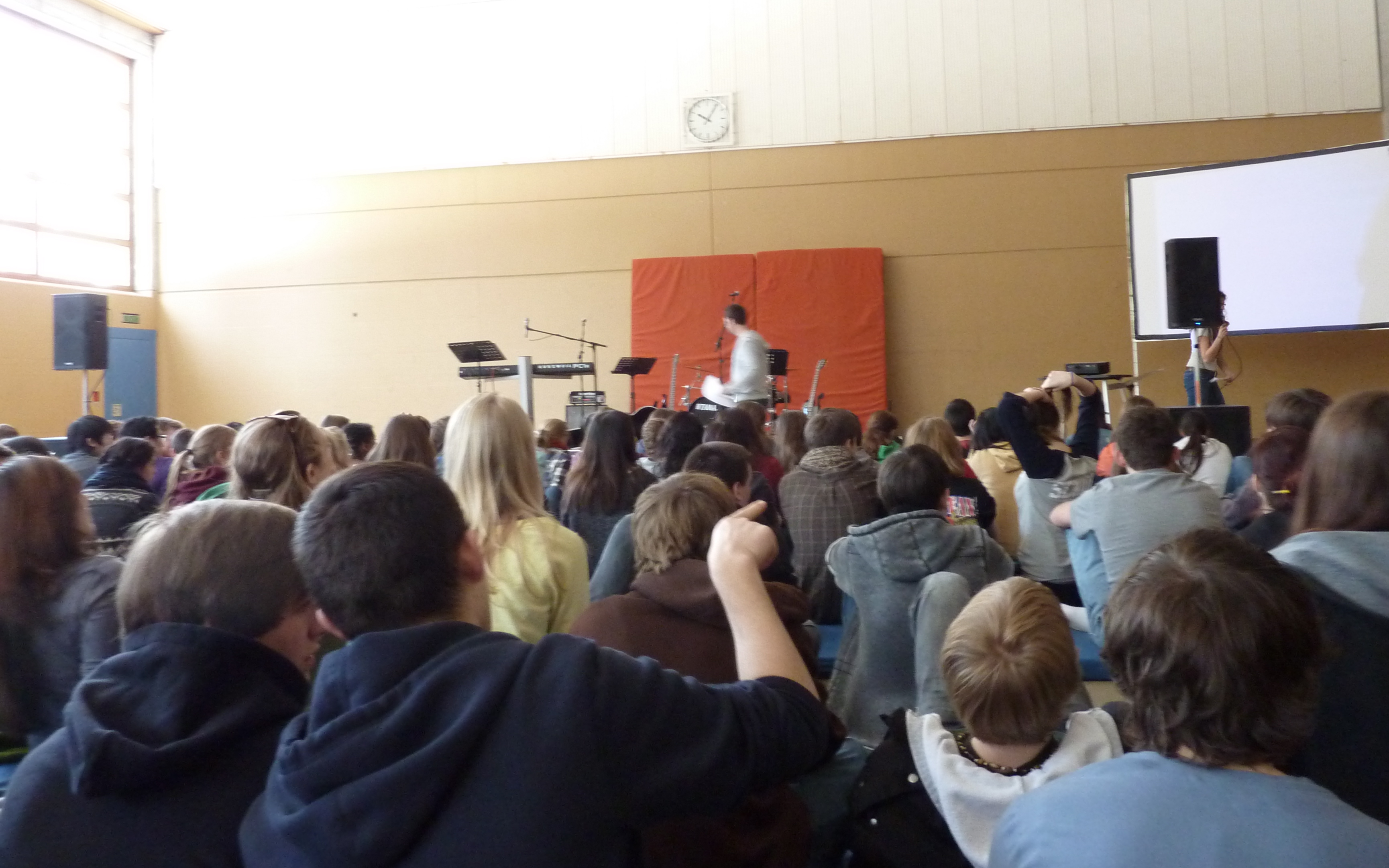 From the back of the gym, I look over a sea of heads to the stage, where our speaker for High School Retreat 2012 is beginning his final session. It’s not often that I look over anyone’s head. At a cool 5’3″, my time in crowds has made me an expert in shoulders and elbows, all of them at face level. This morning, though, my rank of teacher and small group leader allows me a seat on the benches in the back. It’s a strange concession to adulthood–as if perching rigid on a low, backless wooden bench is more comfortable than slouching on the floor–but today I’m happy to accept because of this head-ocean view that it allows.