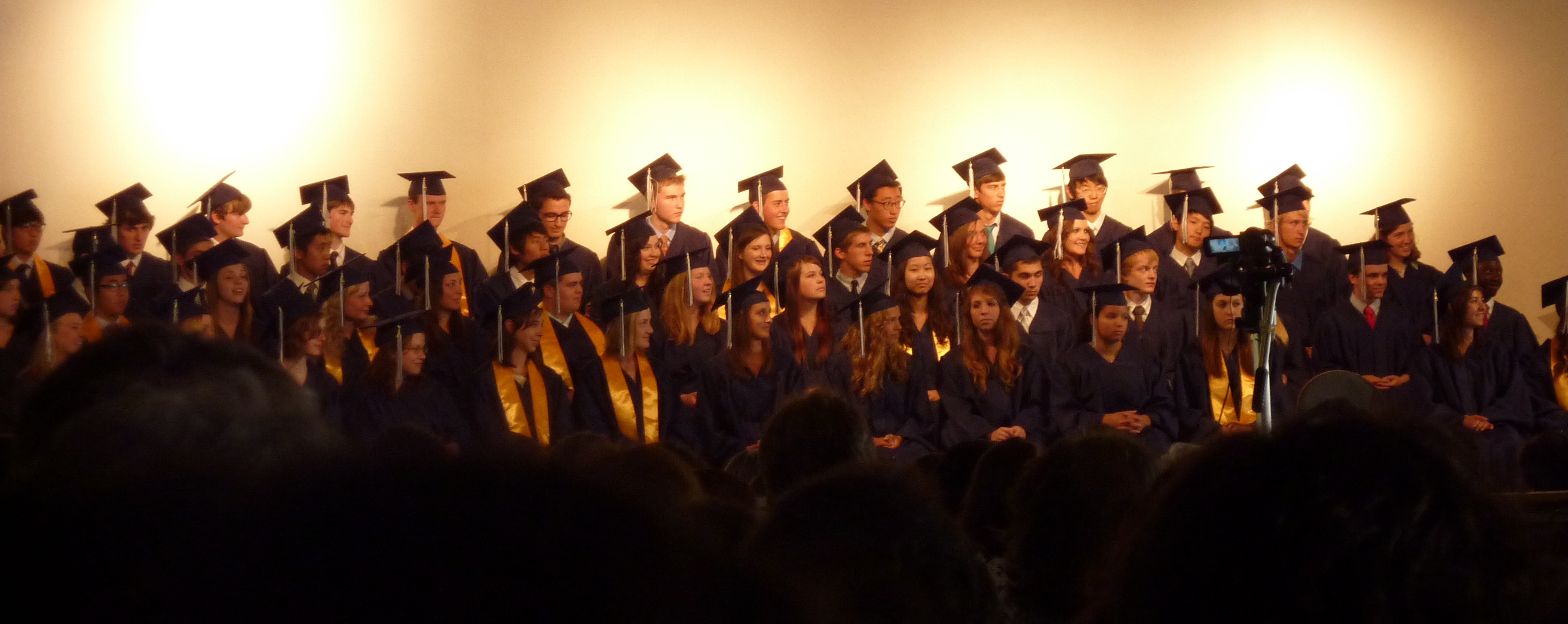 This afternoon, as I sit near the back of the graduation ceremony at Black Forest Academy, it occurs to me that efficiency isn’t the goal here. We’re well into the second hour before the guest speaker–a beloved former Vice Principal–begins reminiscing about teaching these students’ eighth grade social studies class. Yet what we’ve lost in speed, we’ve gained in depth. At BFA, graduation is rich and long, a time that honors not only academic achievement, but the unique role that each graduating senior has played in this community. In front of gathered friends, family and teachers who’ve invested in them, the seniors are individually affirmed in their character, praised for what they’ve added to the fabric of our school.