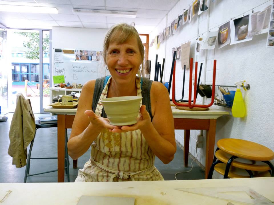 “I don’t get attached until after it’s trimmed,” my classmate tells me, looking up with apprehension from the pottery wheel across from me, where she’s just finished shaping a tiny cup.