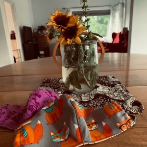 I stir the ingredients together—just flour, salt and water—with my hand, then set the towel-wrapped bowl aside and turn to sewing together the pieces of the masks I cut out a few days ago. I’ve run out of the stylish fabric I bought at the beginning of the summer, so these are made from leftovers from the last few years’ Christmas presents, purple calico and a print with glasses-wearing foxes. I keep making masks. None of them are great, though each a marginal improvement on the last, and to be honest I don’t need many masks. I don’t really go anywhere. But I keep sewing them together, as if each stitch contains a tiny thread of hope that I will see friends, gather in church or school or concert halls, someday.