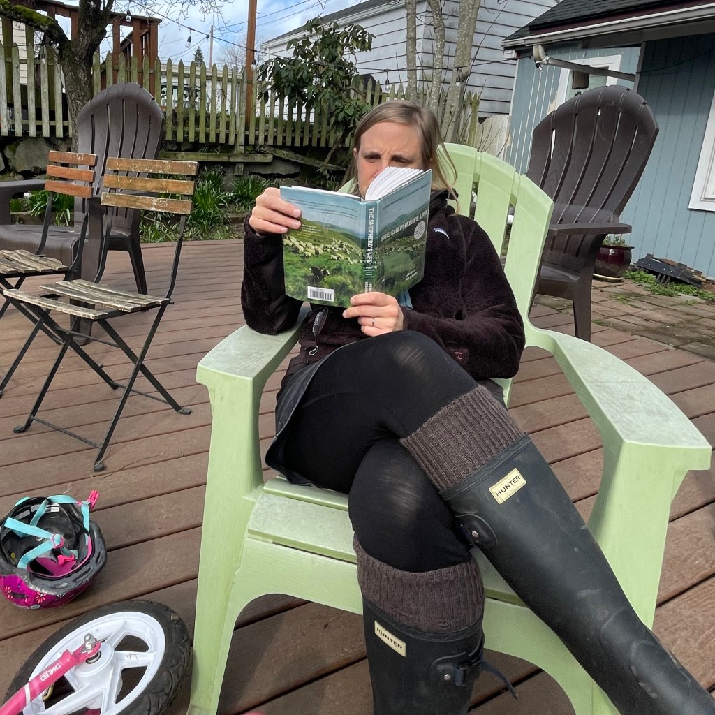 On a cold March afternoon, I’m sitting in a wild backyard. Power lines crisscross the sky, and I can hear the voices of the kids at the after-school program across the street, sometimes distinctly enough that I know what game they are playing. Every few minutes, a long line of cars builds up on the busy road beyond the gate, as they wait for the light to change on the even busier road that crosses it up ahead. There is a lot of noise here; kids, planes, cars. My own children, playing with each other and our dog. It’s not quiet, not the village life I idealize when I’m requesting library books about sheep farming. Life here is close, tight, and quick.