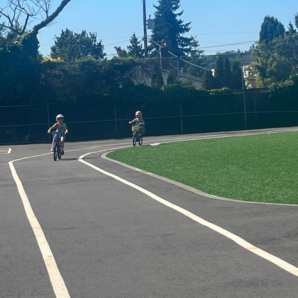 Faced with this reality, I turned to the kids, and said, “Well, either we skip it, or go without bikes, or… I guess we could bike to the Bike Rodeo?” That last option I basically muttered, unable to conjure much enthusiasm for the plan. Because even though the three of us routinely leave here on a cargo bike together, it means that one of us—always me—must either thread the needle of a level bike lane along an arterial, or first plunge down one of the three side streets that descend from our corner towards the lake at the base of the hill. Caught between steep hills and busy streets, my kids don’t really ride much on their own. So naturally, this is what they had to do today.
